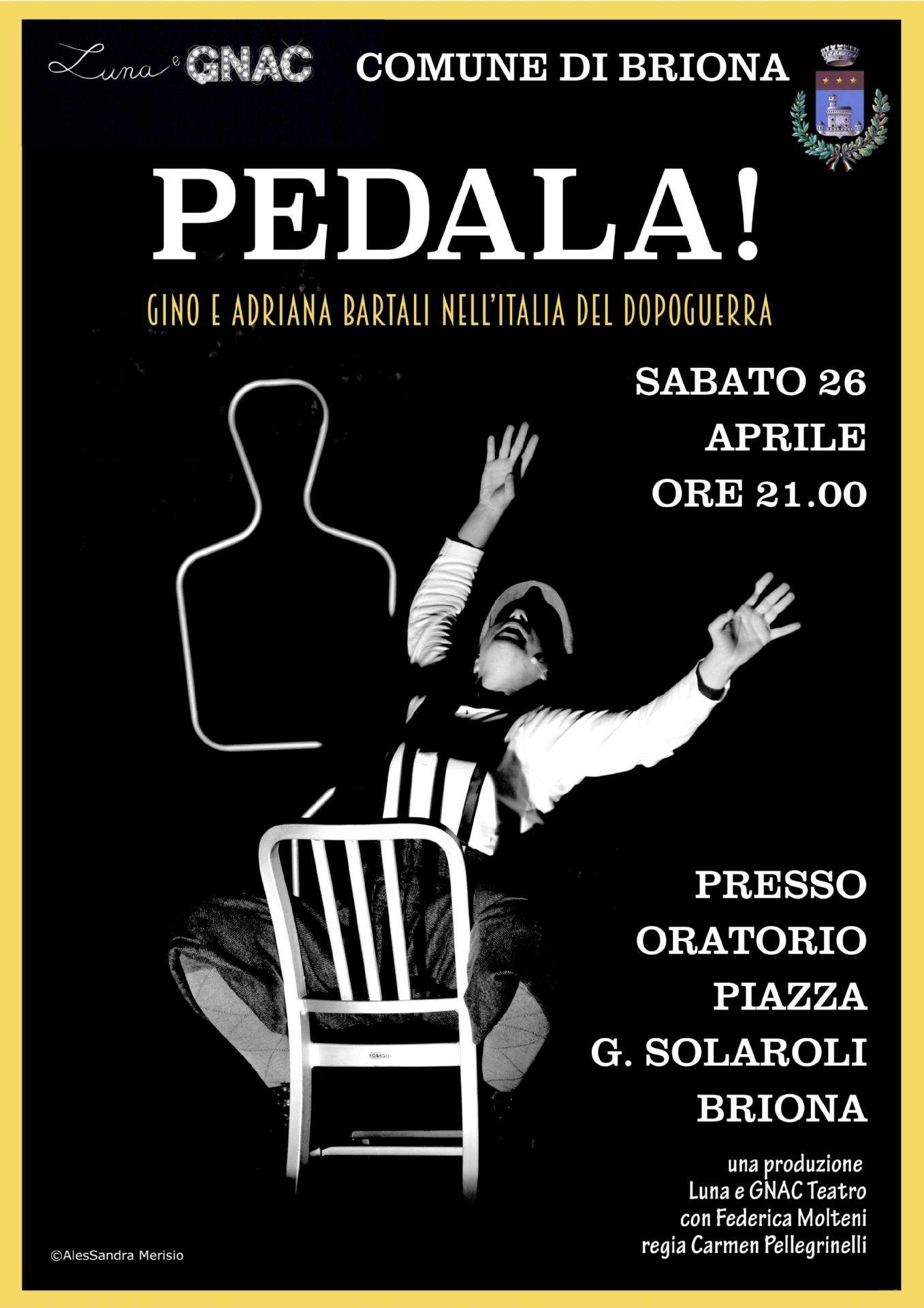 Tra le tante iniziative per celebrare gli 80 anni dalla Liberazione, vi ricordiamo sabato sera alle 21.00 presso l'Oratorio di Briona lo spettacolo Pedala! Gino e Adriana Bartali nell'Italia del Dopoguerra, una produzione Luna e Gnac, di e con Federica Molteni.