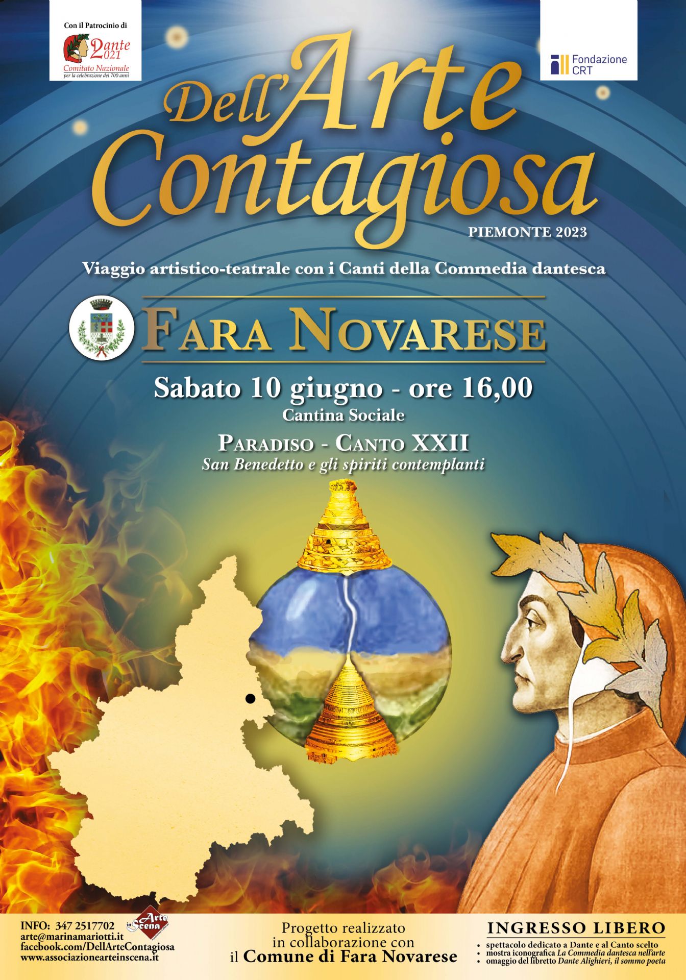 Sabato 10 giugno alle ore 16,00 presso la Cantina Sociale di Fara Novarese si è tenuto lo spettacolo "DELL'ARTE CONTAGIOSA", ispirato al canto XXII del Paradiso della "Divina Commedia" di Dante Alighieri.